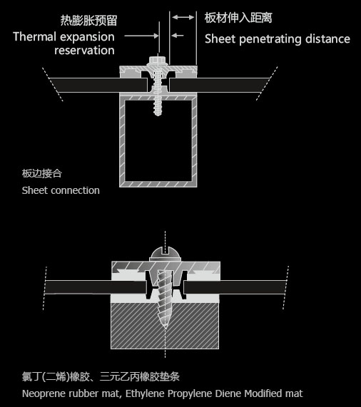 "干法"安裝的優點是橡膠墊卡住板材,在熱脹和冷縮時板可以自由移動。